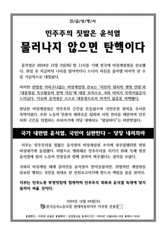 [단독] 현대차 노조, 퇴진 요구하며 공장 멈추기로 산업계 불똥 웃는남자 (175.♡.37.12) 16 2286 6 0 2024.12.05 15:46 https://m.segye.com/view/20241205505361 + 0 6 이전글 : 중국인들이 바라보는 한국 다음글 : 해킹성공ㅋㅋㅋ....어?