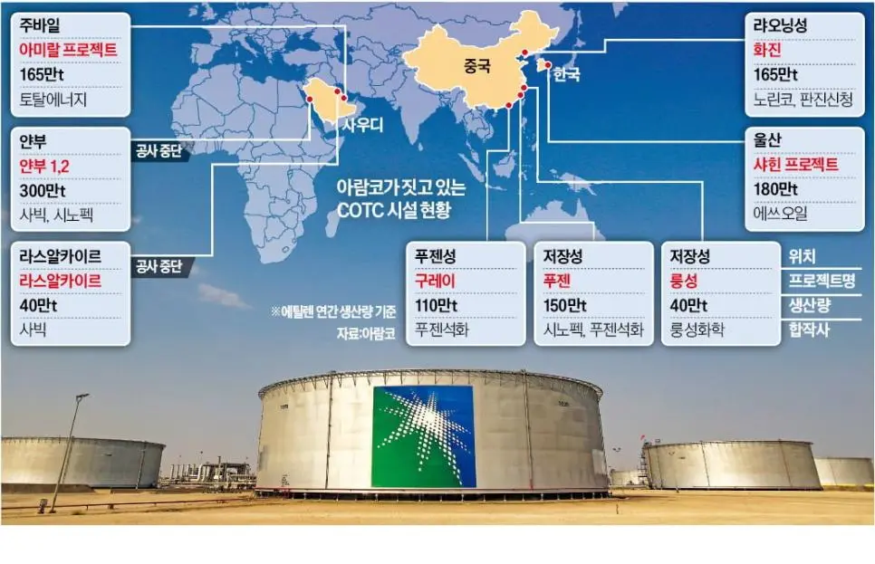 중국이라는 나라가 원톱으로 치고 나가고 있고 사우디 아람코라는 기업이 3군데중 2군데를 공사중단했지만 1군데는 남겨놨군요