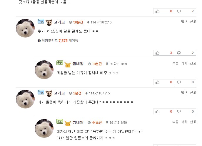 욕설 썸네일 (59.♡.218.59) 1 34 0 0 11.28 20:17 https://gezip.net/bbs/board.php?bo_table=humor3&wr_id=709268#c_709381여기 뭐 익게인 줄. 0 이전글 : 출석 리셋 다음글 : 뭐.. 포인트 별거 아니긴 한데 기부니가 좋지는 않으니까
