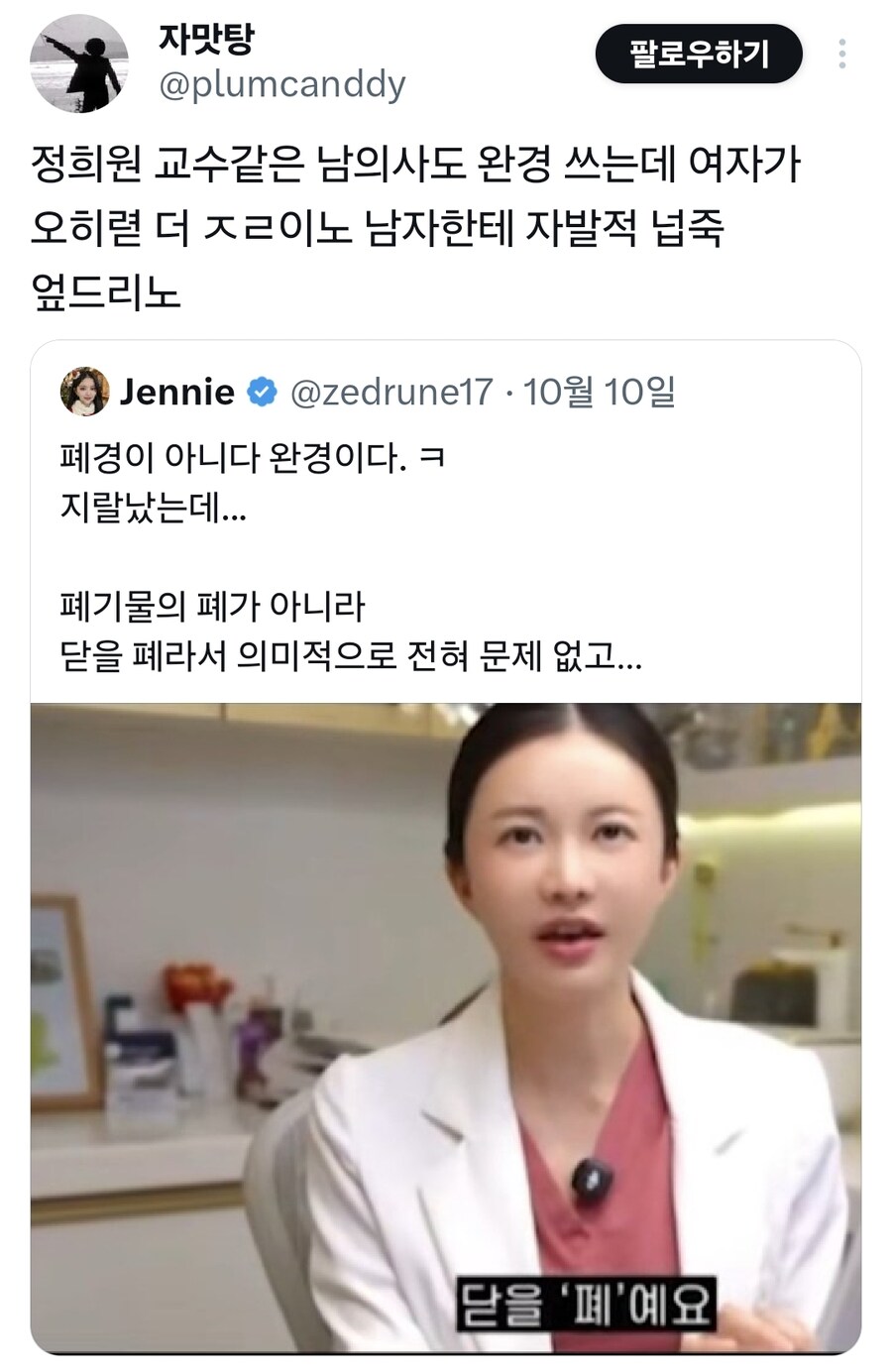 남페미 과학 연전연승 중 불량우유 (110.♡.201.27) 3 511 5 0 2시간전 완경 쓰는거 보고 쎄했는데 결국 터지더라ㅊㅊ- https://bbs.ruliweb.com/community/board/300143/read/73500487 5 이전글 : 입사 4년만에 부사장으로 승진 다음글 : 쿠팡사태 드디어 필살기발동ㄷㄷ