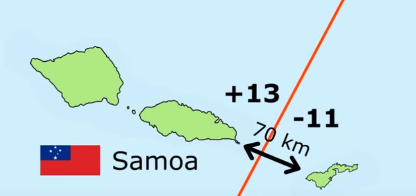 반면, 미국령 사모아는 원래 시간대를 지켰기 때문에 이 두 나라는 70km떨어져 있는데 24시간의 시차를 가지게 된거야