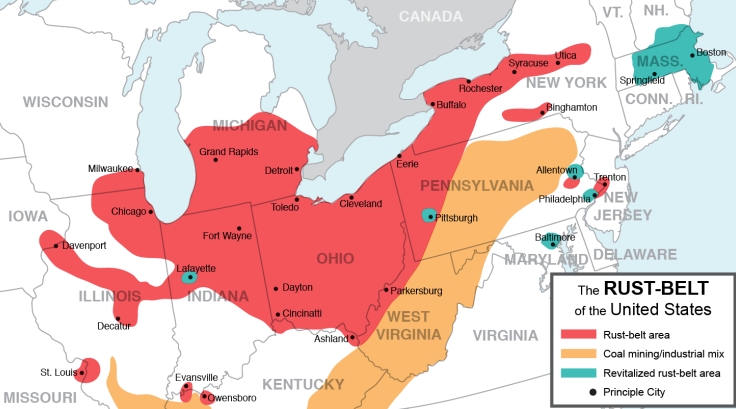 (언론들이 트럼프가 완패할거라고 예상했지만, 트럼프가 이겨버린 공업지대)