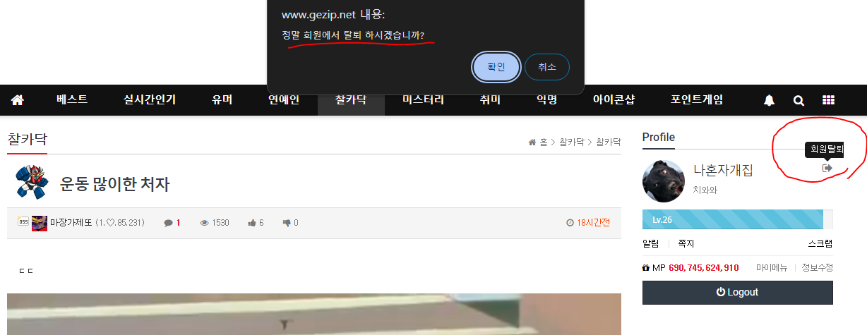 탈퇴버튼 너무 위험한데 나혼자개집 (192.♡.203.223) 3 143 1 0 2024.06.07 23:45 아무생각없이 로그아웃으로 착각하고 누를수 있을것 같애요 1 이전글 : 개집왕은 보시오 다음글 : 내로남불 무지성 비추꾼 신고합니다